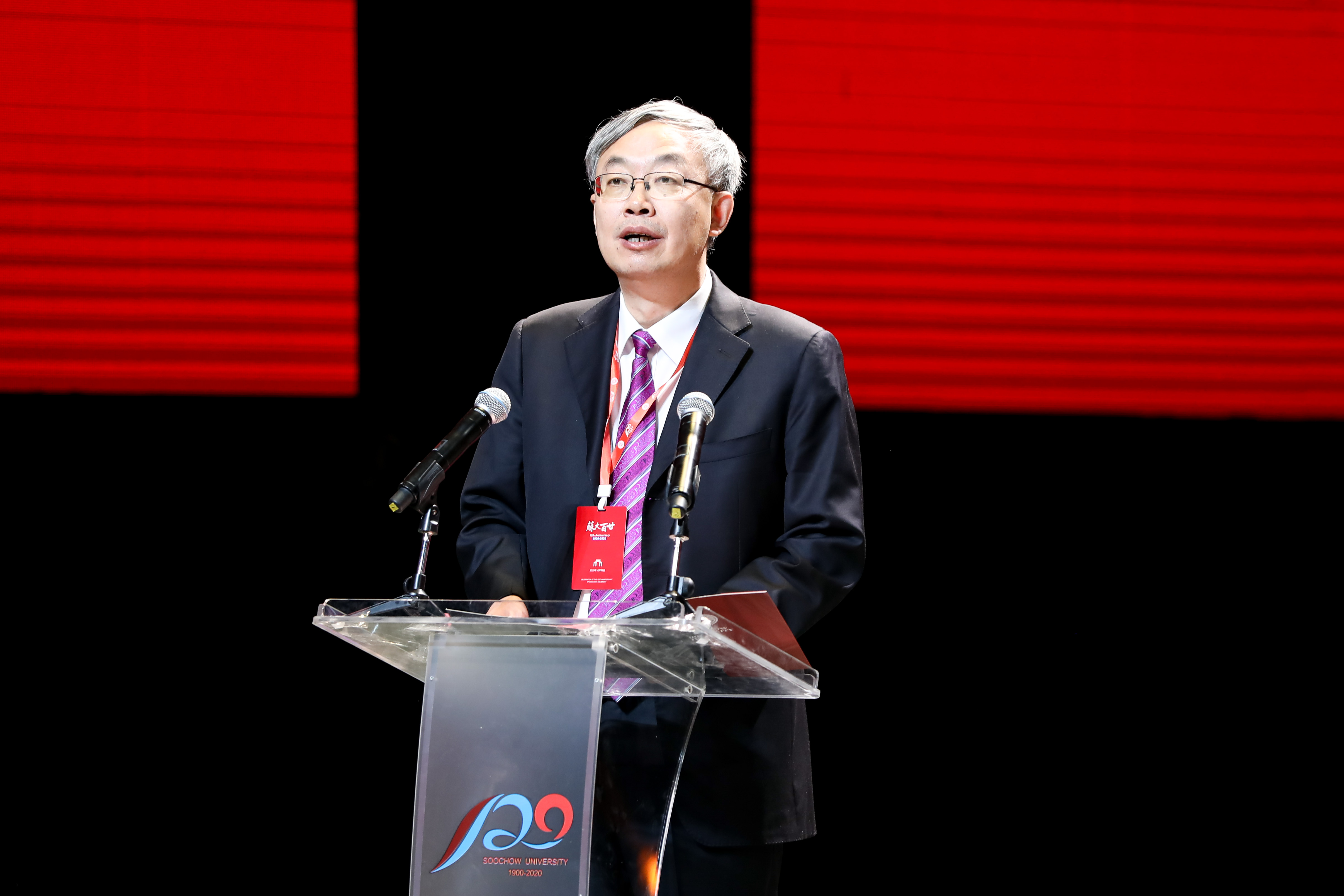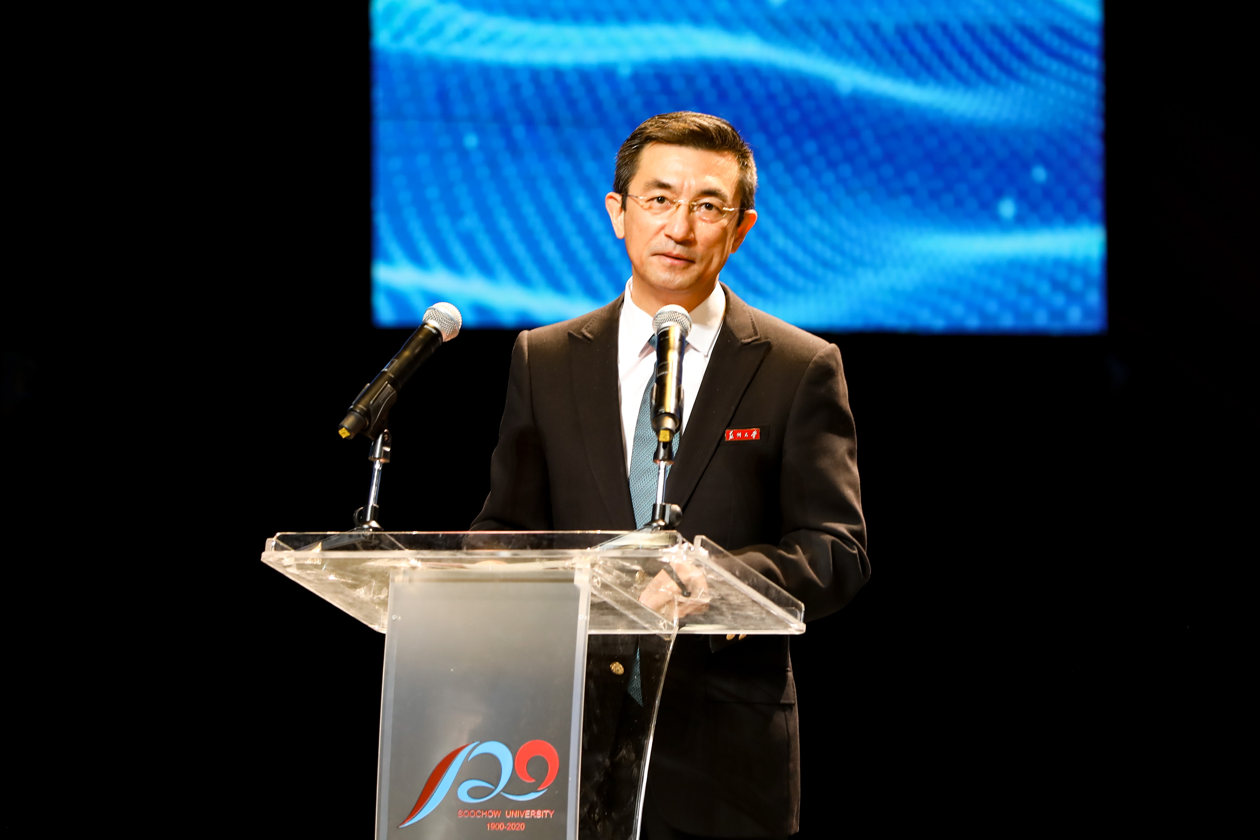 校友代表、中国工程院院士、北京大学常务副校长詹启敏到现场为苏大送上祝福。“母校的教诲始终都铭刻在我的生命中,苏大人的称号也成为我人生中重要的标签。”他表示,在苏大的学习生活塑造了自己的价值观和学术观、人格和素质,衷心祝愿母校能够在新的历史时期承前启后继往开来,相信苏大的明天一定会更加光辉灿烂。