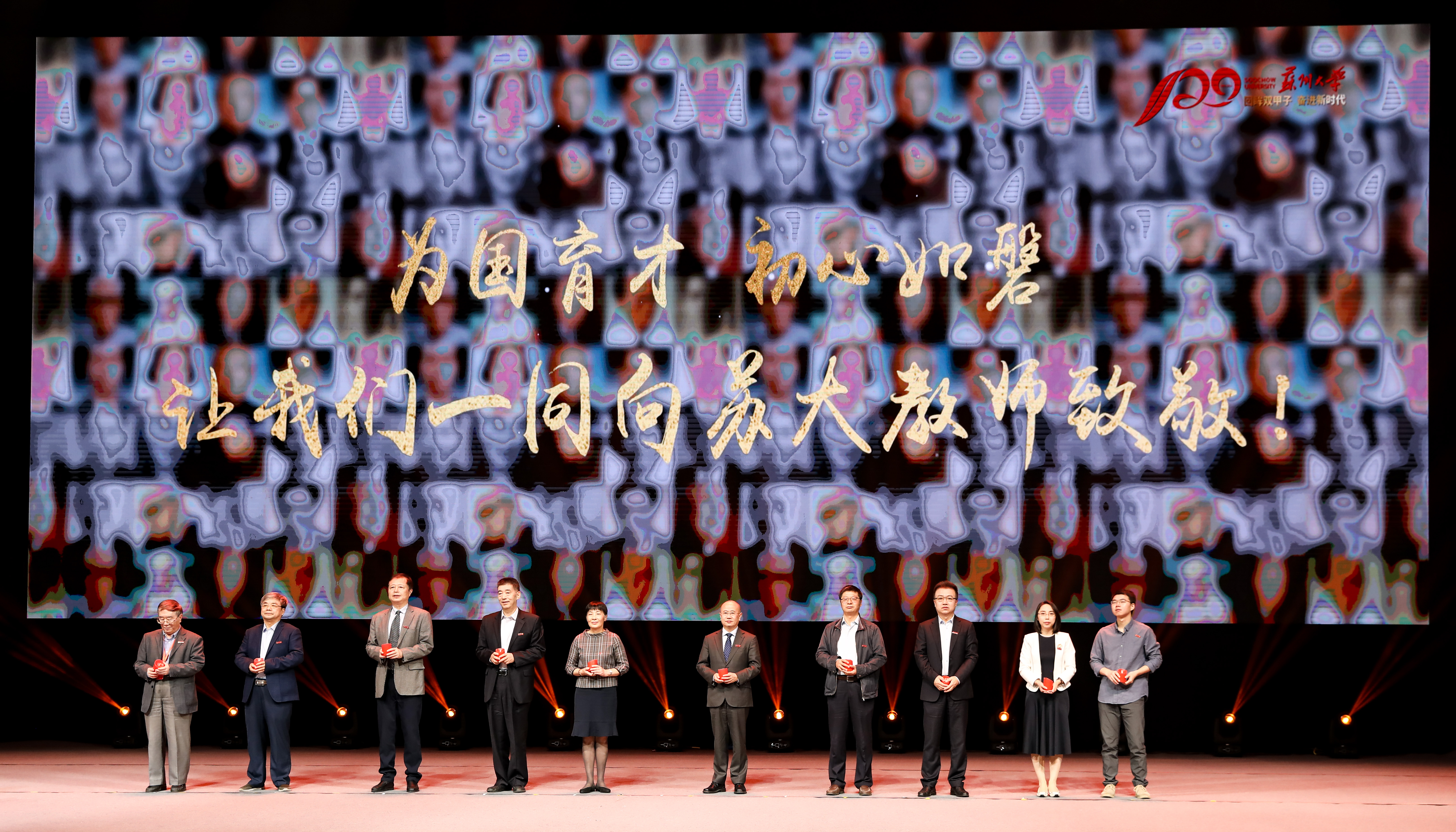 从1900 年创校至今,尊师重教是苏大赓续一个多世纪的传统。在发展大会上,中国科学院院士、苏州大学医学部放射医学与防护学院院长柴之芳,全国模范教师代表、体育学院王家宏,新入职优秀青年教师代表、材料与化学化工学部李杰等10 位来自苏州大学各学院、学科的老中青教师代表依次走上舞台,点亮手中的红烛,传递师者匠心。