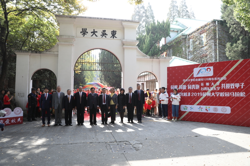 值得一提的是,明年苏州大学和台湾东吴大学即将共同迎来120周年校庆,为进一步加强两岸文化交流,当天上午在东吴大学老校门举行了“同根、同源、同奔跑”苏州大学—台湾东吴大学共迎双甲子起跑仪式暨“名城名校”2019苏州大学校园马拉松赛出发仪式。来自台湾东吴大学的校领导、相关职能部门及学院代表、在苏大学习的东吴大学学生及校友代表,苏州大学校领导、校庆筹备工作小组全体成员、各学院(部)负责校庆工作的领导和联络员、志愿者及学生代表共同参与了起跑仪式。